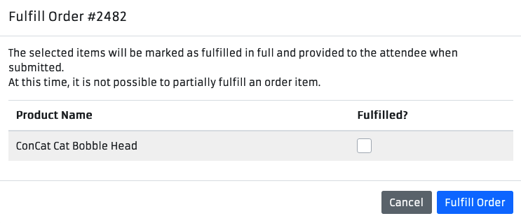 Orders can be viewed through the "Orders" page in Housekeeping, or through the orders tab on an attendee's profile.